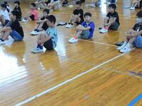 2年生の「朝のストレッチ」の様子です。ストレッチは朝に行うと、寝ている間にこわばった筋肉をほぐし血流をよくする効果があり、頭も体もすっきりと目覚められます。継続することで、柔軟な体をつくることになります。