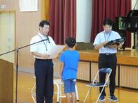 1学期終業式がありました。ねらいは、かしこく「第1学期の終わりにあたり、学習・行動などの学校生活を反省させるととともに、夏休みを計画的に過ごす心構えを持つことができる。」 やさしく「友だちの発表のよいところを見付け、認めてあげることができる。」 たくましく「先生や友だちの話をよい姿勢をできるだけ保って聞くことができる。」 いきいきと「第1学期の自分の生活について振り返り、自分の課題や成長に気付き、前向きな気持ちで夏休みをすごそうとする。」でした。式の中で、児童発表、校長先生の話、表彰等がありました。合言葉「みんなが主役、笑顔かかがやく石山小」を意識しながら、児童一人一人成長が見られた1学期でした。
