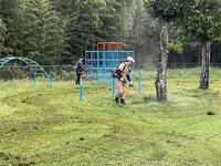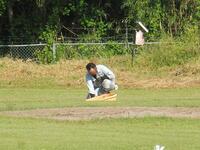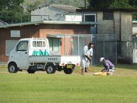 地域の業者の方がこられて、運動場のトラックの整備をしてくださいました。トラックを整地していただき、小石や草などをとりのぞいていただきました。とてもきれいになりました。運動会へむけて気持ち良く練習ができます。ありがとうございました。