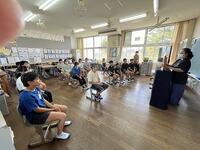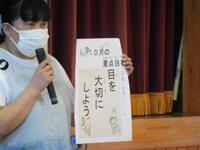 保健室の先生から、「10月の目標 目を大切しよう」について話がありました。目を長時間つかった後は、「近くをみる10秒→遠くをみる10秒」という具体的な指導がありました。みんな実践して、目を大切にしてほしいですね。