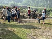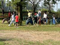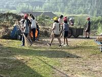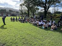 朝の活動での外掃除の様子です。10月19日に予定してある運動会に向けて全校で、運動場の草やえだを集めてきれいにしました。全校で取り組むと、すみずみまで、はやく終わらせることができました。合言葉「みんなが主役 笑顔かがやく石山小」にふさわしい活動でした。