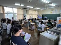 5・6年生は参観授業で「非行防止教室」を行いました。この学習は学校内外における教育活動の一環として、児童生徒にとって、その規範意識を高め、犯罪について正しく理解し、社会情勢などについて学習することとなるとともに、集団の秩序を守りつつ、他者を思いやり、他者を傷つけず、他者からも攻撃を受けないよう、自分で自分の身を守る知識やスキルを身に付けることを目的にしています。