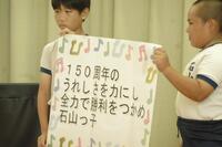 運動会にむけて、各委員会で計画した結団式がありました。赤・白が決まり、団長やリーダーの紹介の後に、これからがんばっていくことのエールが団長からありました。これから約1カ月間いろいろな練習を通して、一人一人成長していくことでしょう。「子どもたちが主役」となる取組の一つとなりました。