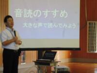 全校朝会がありました。校長先生から「音読のすすめ」という話がありました。実際に、子どもたちに声をださせて指導されました。指導することで、子どもたちも音読の仕方がよくなっていました。最後に、音読をすることのよさについてもふれられていました。「音読」をすることで「かしこい子」になってほしいですね。