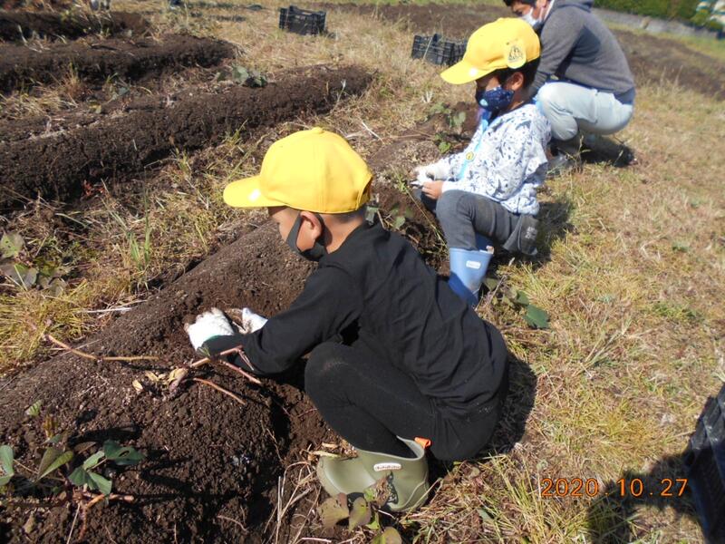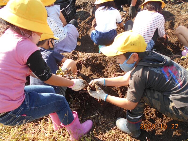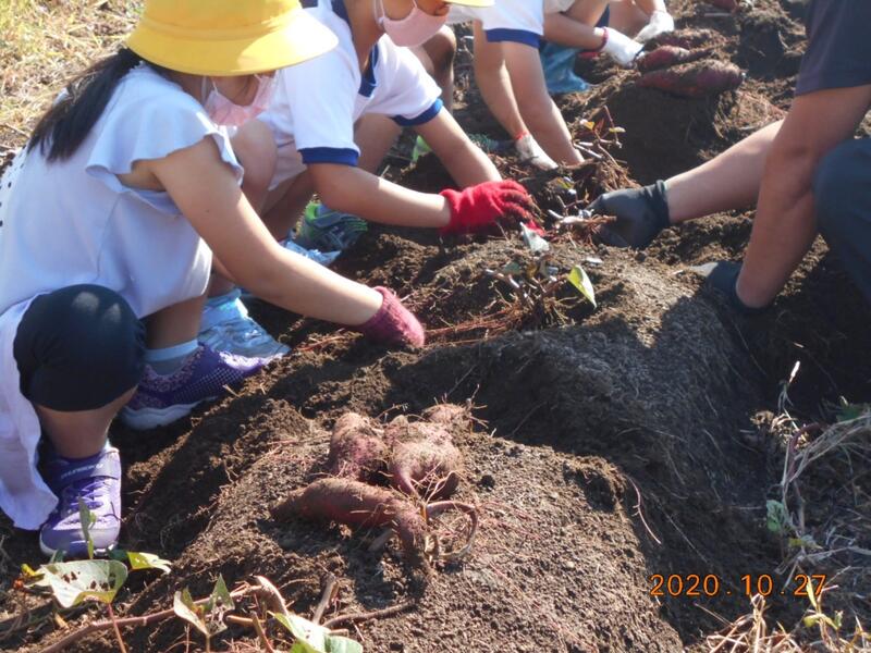 10月27日(火) 1,2,3年生、幼稚園の芋掘りでした。