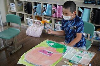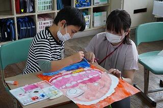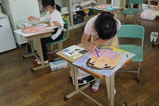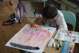 構図が大胆で、迫力がある作品に仕上げていました。色塗りも丁寧で、子どもたちが真剣に作品に向かっている姿がとてもすばらしかったです。