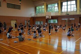 子どもたちも終始笑顔で、体を動かすことが実に楽しそうでした。コロナ禍であり、身体的接触を伴う運動はできませんが、友達同士を声を掛け合い、助け合ったり、教え合ったりしながら運動に取り組んでいました。