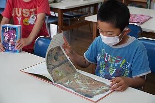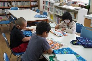 今日は、図書室に行って、神話や昔話の本を読んだり、借りたりしました。図書室には昔話や神話のコーナーがあり、「これ知ってる。」「よんでもらったことある。」「家にもあるよ」と楽しみながら本を選んだり、読んだりしていました。これから、読んだ本をもとに感想を交流します。