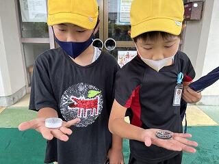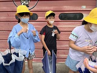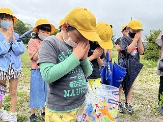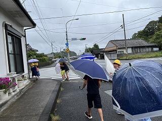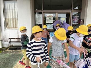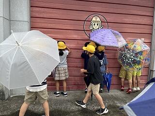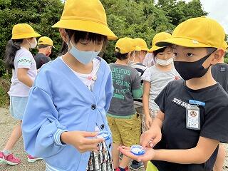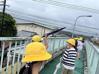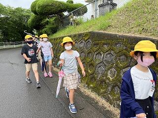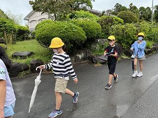 今週は雨が多くて天気を心配していたのですが、「てるてるぼうず」の効果なのか、子どもたちの願いが通じ探検の時間にはほぼやんでいました。