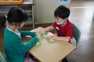 子どもたちは、「先生、できました。」と元気に答えていました。途中からは、友達同士で、分解したものを見せ合うなど、ペア学習もできるようになってきました。すごい、成長です。「算数大好き!」と嬉しそうに話してくれました。
