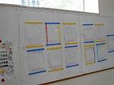 授業の中ではグループで考えを出し合って一つのものを作り上げることは、子どもたちにとって、とても大事な体験になります。5年生教室の後ろには、4つの班が作成した「みんなが過ごしやすい町へ」で調べた、点字ブロックやスロープなどについてまとめた模造紙が貼ってあります。4年生は、班ごとに新聞づくりに取り組んでいました。企画、取材、編集とみんなで意見を出し合うことで、素敵な新聞が出来上がることでしょう。