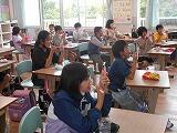 現地では、昆虫や植物などを写真に撮って、次の授業で活用します。帰ってきたときには汗びっしょり!水筒もほとんど空っぽになったようです。