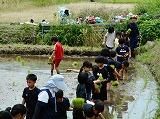 午後は、4・5年生の田植えです。毎年地区のYYクラブの皆さんが準備をして指導もしてくださいます。写真は植え始めの様子なのであまり汚れていませんが、終わった頃には洗濯のし甲斐がある有様でした。秋の収穫まで時々観察を続け、稲刈りもがんばりましょう。