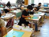 7月1日(金) うだるような夏空の下、冷房の効いた教室では、1年生、2年生とも図工の授業に励んでいました。