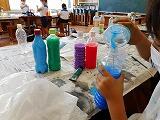 本日、2年生は2時間続けての図工の時間でした。朝、ペットボトルをたくさん抱えて登校してきた理由はこれでした。いろんな色の絵の具を混ぜ合わせると、あら不思議 思いも寄らないカラフルな色ができあがりました。色を混ぜ合わせすぎて、な色もできあがっていましたが・・・。楽しみながら自然と色の三原色を学んでいたようです。