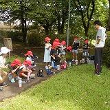 7月8日(金) この日も蒸し暑い1日となりました。そんな中、1年生は生活科の授業で、近くにある「しまうま公園」に行ってきました。熱中症対策でマスクを外し、水筒を持って、タブレットを先生に預かってもらって出発です。