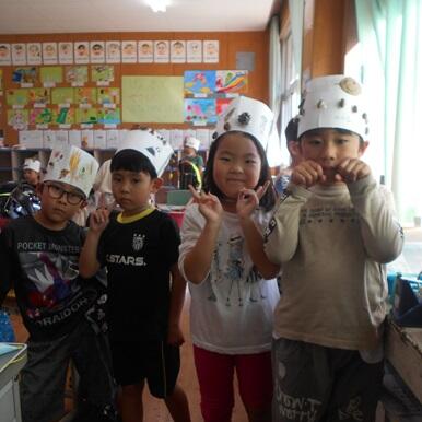 見つけた秋らしいものを使って、図工の時間に王冠を作りました。みんな、とっても楽しそうです。