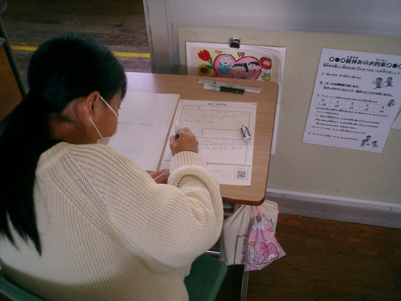 2年生は、国語で漢字の練習をしていました。ちょっと緊張気味です。