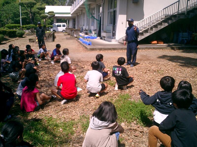 本日は、都城市の交通安全協会の指導員の方をお招きして、全校児童を対象に交通安全教室を実施しました。
