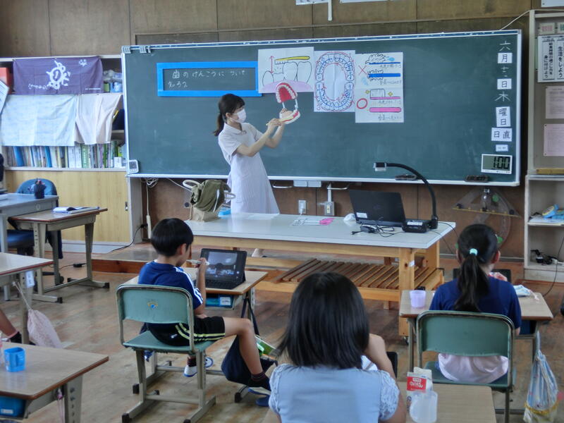 6月13日(木)に、学校歯科医の歯科衛生士の方々を講師にお招きして、正しい歯磨きの指導をしていただきました。