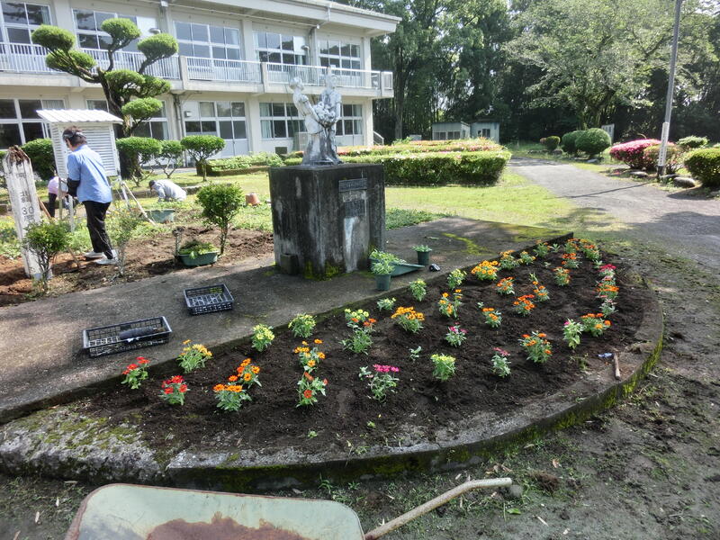 花壇の草も元気いっぱいで、草取りも大変なんですが、毎朝、2年生が草取りを頑張っています。朝の早い時間帯に少しずつですが、毎朝草を取っているので、2年生の花壇は、とってもきれいです。