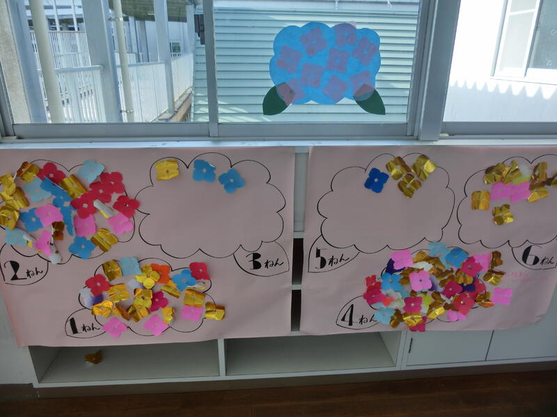 今日も雨でした。梅雨に入って、雨の日が多くなってきました。湿気が多くなったり、水泳が中止になったりと残念なことも多いのですが、植物にとっては、恵みの雨です。