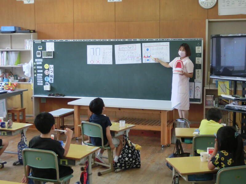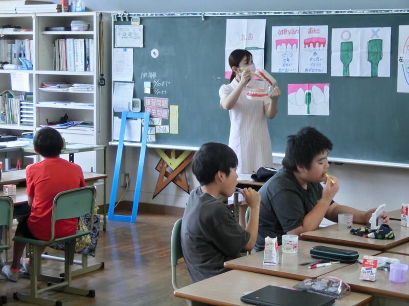 6月13日(木)に、学校歯科医の歯科衛生士の方々を講師にお招きして、正しい歯磨きの指導をしていただきました。