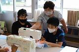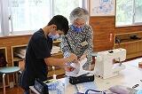 そんな状況を打開してくださるのが、地域のボランティアの方々です! グループ毎に一人ずつ入っていただき、助言や指導をしてくださいました。活動がスムーズに進み、ミシンの使い方が上達しました!ありがとうございました!