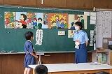 2校時、3年生と4年生では、都城警察署生活安全課から3名をお招きして、「非行防止教室」が行われました。万引きは「窃盗罪」という犯罪になり、一度犯してしまうと一生消えることのない犯罪歴が残ってしまうということを学びました。また、誘われたらどうするかという役割演技を行い、断る方法についても学ぶことができました。
