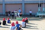 6月の全校朝会以来、4ヶ月ぶりの体育館での全校児童が集まっての集会です。コロナ対策で、マスク着用、手の消毒、1m以上間隔を空けて整列。