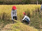 5年生は去年も稲刈りをやっているので、4年生のお手本となりました。