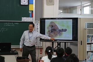 10月17日(木)、 3,4年生の理科学習で昆虫教室が行われました。講師は姫城中学校の木野田毅校長先生です。昆虫の大きさや形、模様、生態など身近な昆虫から世界の昆虫までとても楽しいお話をしていただきました。子どもたちからも驚きの声や歓声が沸き上がっていました。昆虫が命をつなぐために進化してきた様子や標本をなぜつくるのかなどのお話もうかがうことができました。