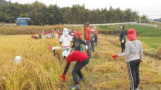 6月に植えた3年生のサツマイモと4,5年生が植えた稲の収穫がありました。YYクラブの中村さんの話の後、さっそく収穫です。3年生は土の中から出てくるサツマイモの姿を見つける度に歓声を上げていました。4,5年生は鎌を使っての収穫です。5年生は2年目なのでさすがの手さばきでした。みんな作業に一生懸命取り組み、収穫の喜びを体験しました。