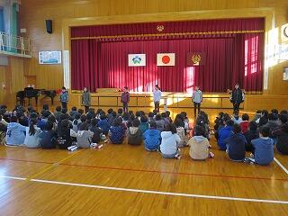 始めに、学年を代表した子ども達の作文発表がありました。2学期の自分の成長を発表することができました。全校の子ども達も発表を聞きながら、2学期のふりかえりができたのではないかと思います。