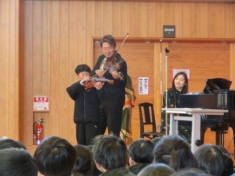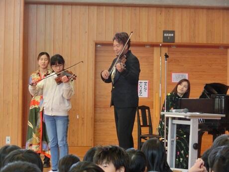山内様は、子供達に将来の夢を尋ねられた後、自分の職業の話をされました。「演奏だけでなく、作曲やプロデュースもされている。」というお話でした。