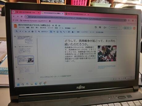 今日は、出張で各学年の様子を見ることができなかったのですが、帰校してパソコンを見ると、6年生の社会科の学習シートが学級担任から共有されていました。