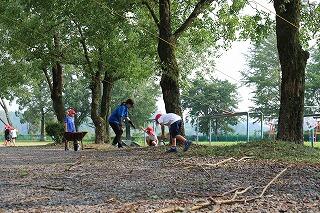 山田小学校は、たくさんの枝や葉っぱが運動場や遊具広場に散乱していたため、1校時に全校児童で片付けを行いました。一生懸命片付けをしてくれたお陰で、とてもきれいになりました。