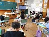 2月14日(火) 2時間目の1年生教室から、元気な「ハイ」という声が聞こえてきたので、思わず覗いてみました。算数の時間「おなじかずずつ」という単元で、道具を使ったりプリントに書き込んだりして正しく分けることができていました。隣の2年生では、同じく算数で「1000を超える数」についての勉強でした。終わりの方では復習としてキュビナに取り組んでいました。4年生は書写の時間、終わった子はタブレットに向かっており、墨汁で真っ黒になった手でタイピング練習をする様子がかわいらしかったです。