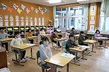 学校では、今朝、全校朝会が行われました。3密を避けるため、放送で行いました。