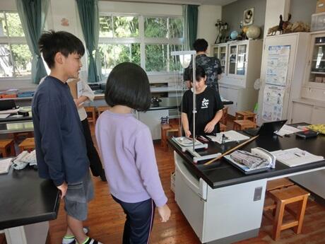 「視点からの距離が変われば、ふりこの速さは変わるのか?」という課題で児童は、予想を立て、実験に臨みます。