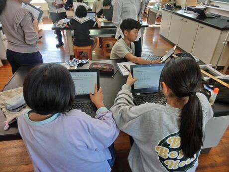 そして、入力された実験結果は、即座に教師のパソコンに届き、全員がそれを共有することができるのです。なんとスピーディーな時代になってきたことでしょう。驚きです。