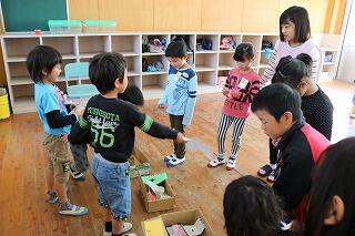 1年生が中央保育所の年長さんを招いてのおもちゃ祭りを開きました。おもちゃは生活科でつくった手作りのおもちゃです。来年、山田小に入学する年長さんが多く、すぐに仲良くなりました。1年生も一つ上の小学校の先輩としてしっかり遊びをサポートをしていました。笑顔と歓声あふれるおもちゃ祭りでした。年長さんには小学校が楽しく、優しいお兄さん、お姉さんがいるところだと思ってもらえたでしょうか。2月にもう一度、交流会があります。またの出会いが楽しみです。