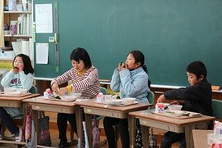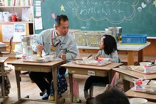 2月1日(金) 今日は給食感謝週間の取組みとして、毎日の給食でお世話になっている山田給食センター所長様と学校栄養職員様をお招きして交流給食を行ないました。