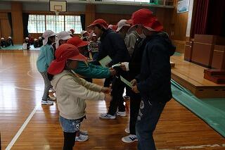 最後に、1年生から6年生へ手作りのお礼の手紙が手渡されました。