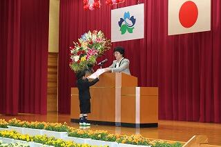 代表児童に教科書が授与されます。これからたくさん勉強をがんばりましょう。