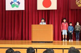 全学年の学級代表や校長先生の話で2学期を振り返りました。各学年の行事等で見られた成長や全校でめざしている「あたりまえのことが あたりまえにできる山田っ子」を再度振り返り、確認しました。