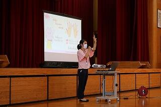 また、栄養教諭の先生から手洗いの大切さについてお話していただきました。感染症予防の基本は手洗いです。この時期は感染性胃腸炎が流行しやすい時期でもあります。ご家庭でも、1回の手洗いにつき20秒はかけて洗えているか、見守りをお願いいたします。