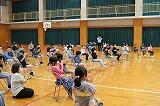 マスク着用、換気、ソーシャルディスタンスに気を付けて、体育館で全校朝会が行われました。