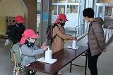 朝は、児童玄関前での手の消毒とマスク着用の確認。
