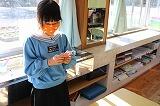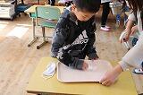 給食では、2学期まで、おぼんと牛乳パックを手洗い場で洗っていましたが、密の状態になることがあったため、おぼんはティッシュで消毒、牛乳パックはたたんで廃棄することにしました。